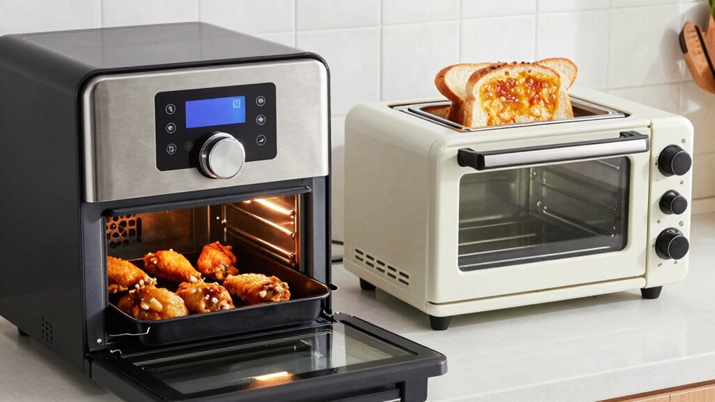 In the end, choosing between an air fryer oven and a toaster oven boils down to your cooking style and needs. An air fryer’s quick, crispy results are perfect for modern, fast-paced kitchens, while a trusty toaster oven offers versatility and a touch of vintage charm—like a trusty old typewriter in a digital world. Whichever you pick, you’ll be well on your way to delicious meals, no flux capacitor required!